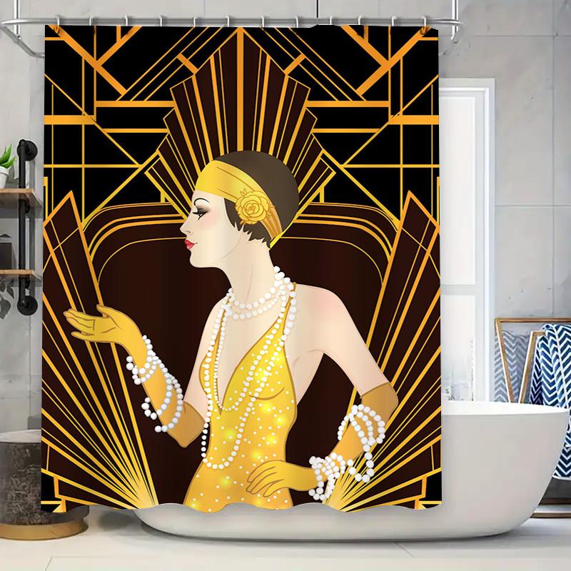 Vintage Art Deco Shower Curtain Luxury Golden Flapper Girl Print Bath Mat Cover Decorative Fabric Home Decoration Waterproof Was