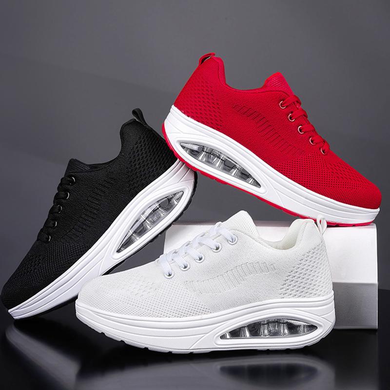 HOHO FAIR Women Shoes Women Platform Shoes Mesh Breathable Thick Soled Shoes Ladies Non-Slip White Sneakers