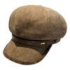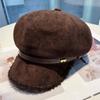 Vintage Faux Suede Newsboy Cap Women Autumn Winter Warm Octagonal Hat with Belt Buckle Elegant Versatile Baker Boy Hat