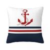 Navy Blue And White Stripes With A Red Anchor Pillow Cases Blue Nautical Anchor Cushion Covers Decor Pillowcase for Home 18"x18"