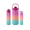 3Pcs Set Large Capacity Gradient Color Sport Water Bottle Plastic with Time Marker Gym Straw Cup Leakproof Water Cup School
