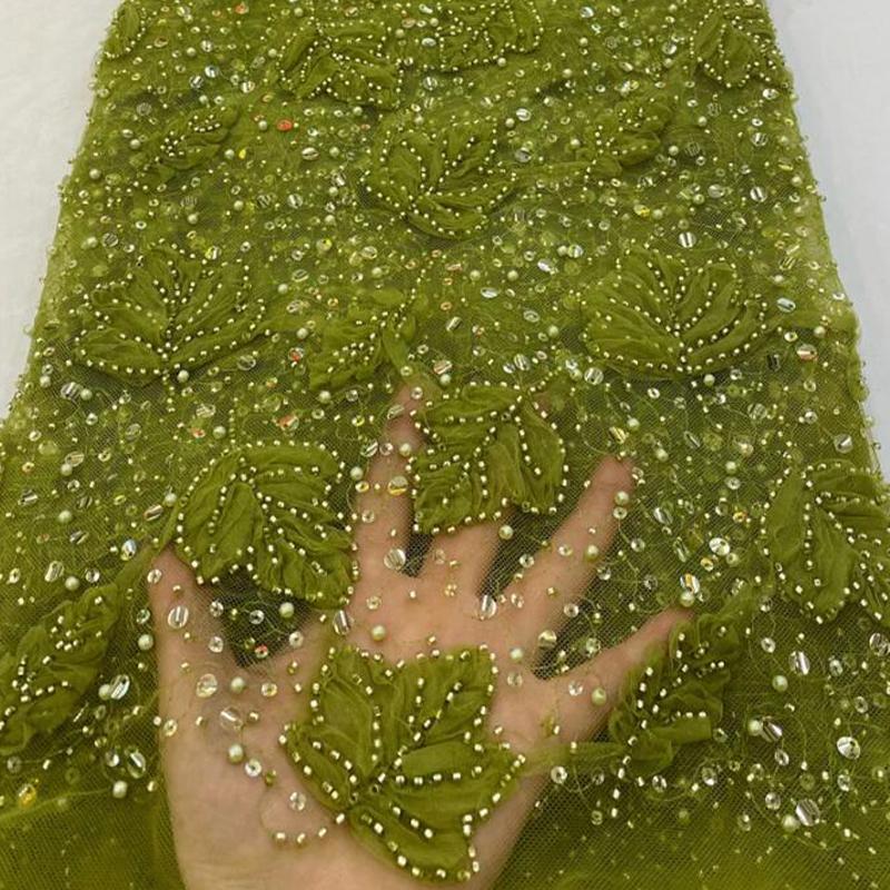 High Quality African Tube Beaded Sequin Lace Fabric Sequin Embroidery French Tulle Lace Nigerian Wedding Dress Cheongsam Fabric