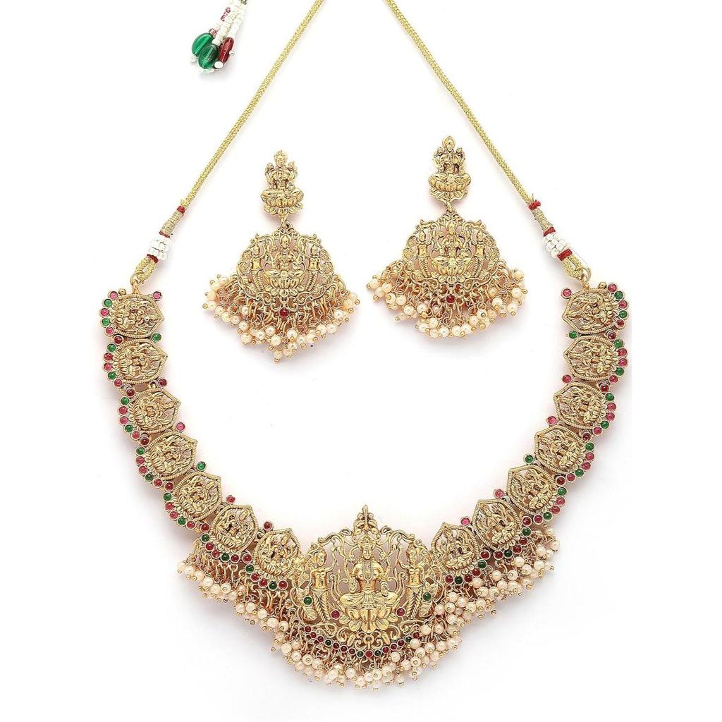 Traditional Stylish with Beaded Studded Choker Necklace with Dangle Earring Jewellery Set for Women & Girls