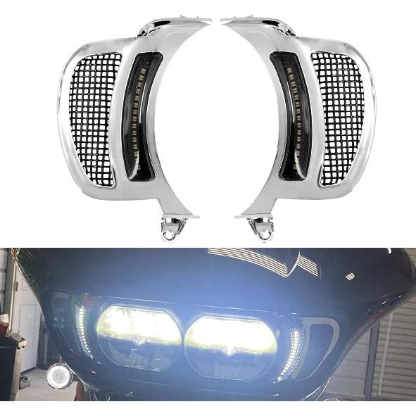 HDBUBALUS Motorcycle Headlight Vent Accent Turn Signal LED Indicator Side Lights For Harley Road Glide FLTRX 2015-2023 (Color: Chrome Housing Black