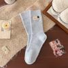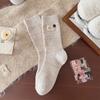 Woolen Mid-calf Women's Socks for Winter, Thickened and Warm Knitted Fabric Label Button Solid Color Simple Pile Socks