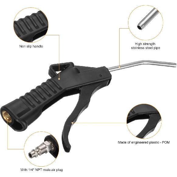 HARFINGTON 2pcs Air Blow Gun High Flow Air Compressor Blow Gun with 1/4" NPT Male Air Plug and Angled Bent for Industrial Household Air Tools