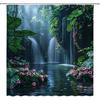 Rainforest Waterfall Shower Curtain Nature Green Tree Forest Flowers Waterfall Tropical Scenery Landscape 70" WX70 H Bathroom Decor Fabric Curtain