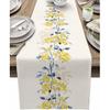 Summer Table Runner 70 Inches Long Spring Flower Wild Leaves Seasonal Runner for Tables Dining Room Blue White Yellow Floral Holiday Dinner Runner