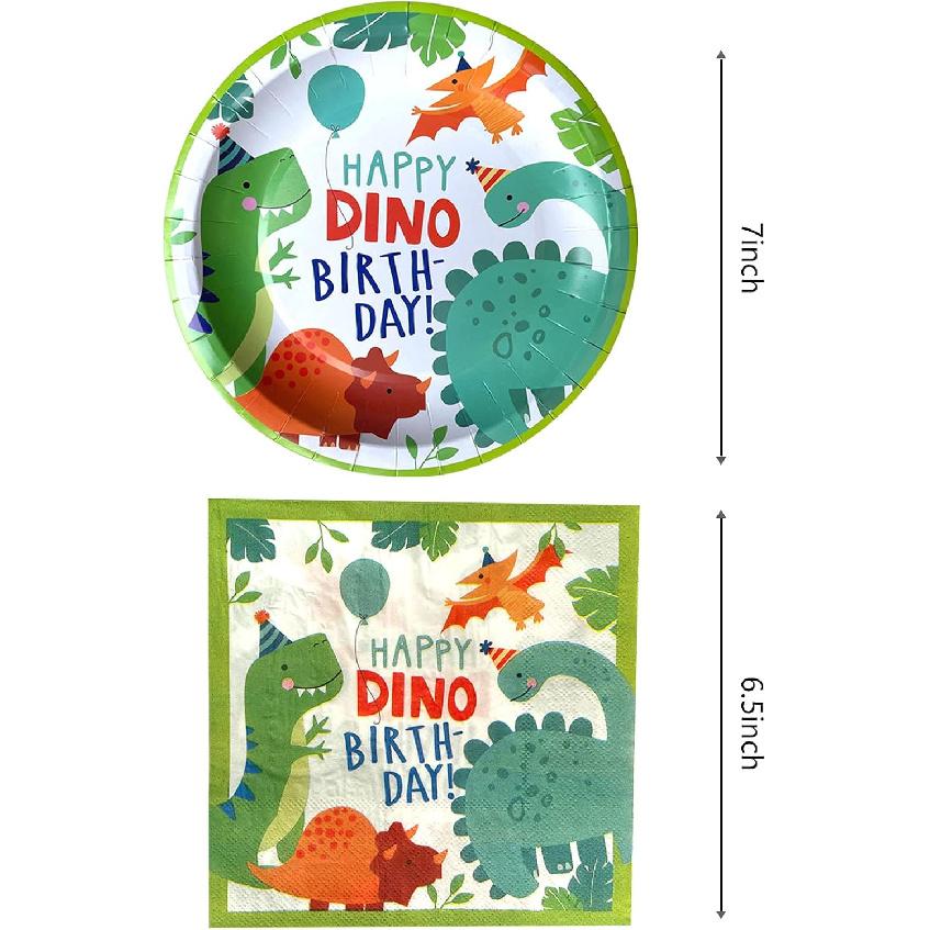 Watercolor Dinosaur Birthday Party Supplies, 20 Plates and 20 Napkin, for Dinosaur Theme Birthday Party Decoration for Boys Kids