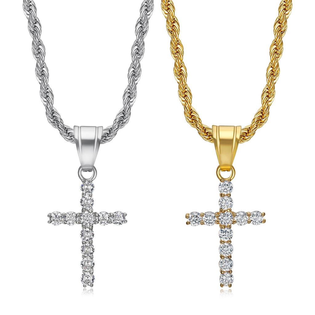 2026 Jewelry Fashion Trend Inlaid Zircon Cross Pendant Necklace Men's Party Jewelry Accessories