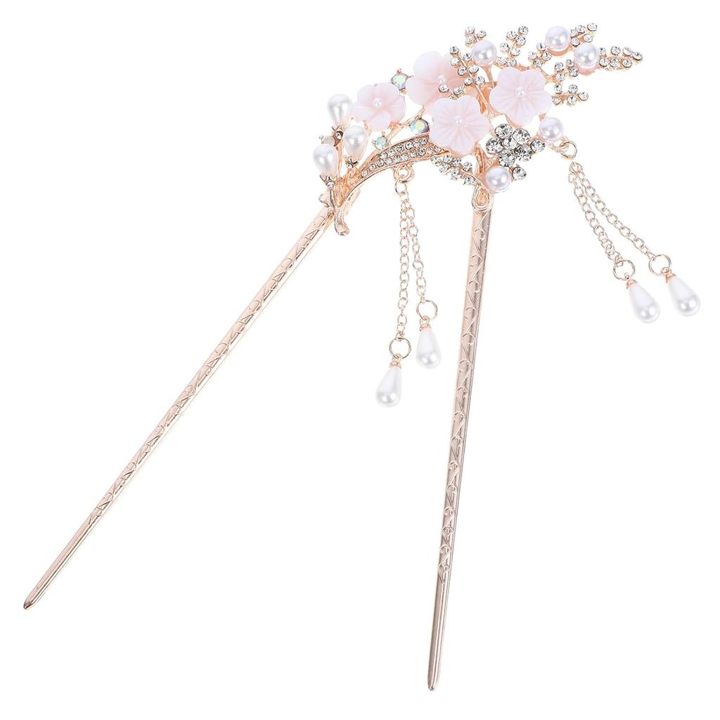 2 Pcs Rhinestone Pearl Flower Hair Stick Chinese Hair Chopsticks Vintage Tassel Hair Pin Chignon Pin Hair Styling Making Accessories for Women