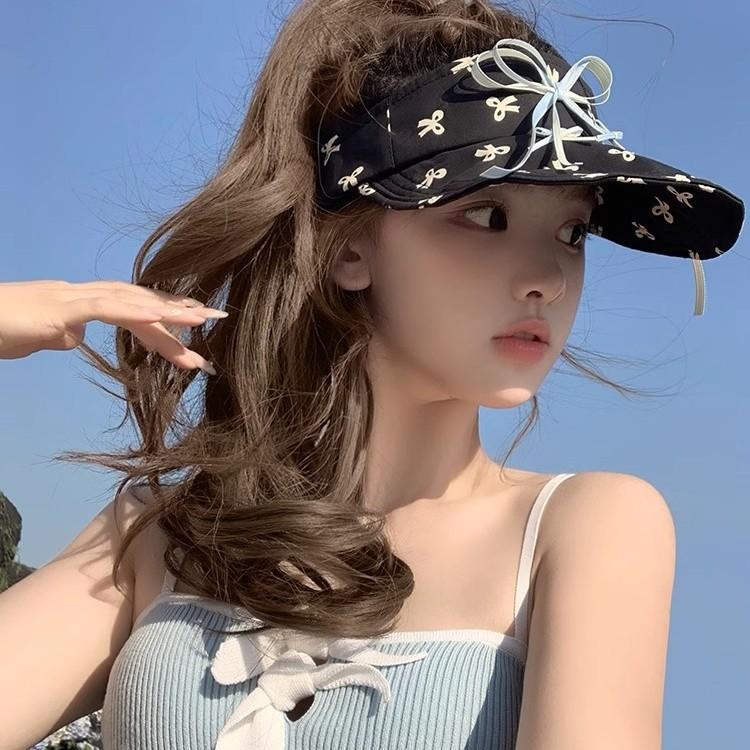 2025 Small Fresh and Sweet Bow Empty Top Hat Spring and Summer UV Protection Versatile Sunshade Sun Protection Cap