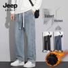JEEP SPIRIT Men's Winter Fleece-Lined Loose Straight-Leg Jeans