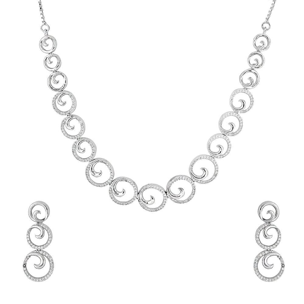 Jewellery Set for Women and Girls American Diamond Jewellery Set | Rosegold Rhodium Plated AD Necklace Set for Women | Birthday Gift for Girls & Women