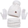 Thickened Women Hat Scarf Gloves Set Solid Color Winter Knit Gloves Set Outdoor