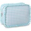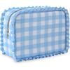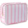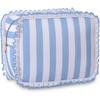 Stripe Ruffle Makeup Bag,Large Travel Cute Cosmetic Bag for Women Girls,Toiletry Bag Make Up Organizer 10.8 X 4.5 X 8 Inch (Blue Stripe)
