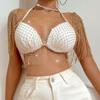 Rhinestone Rhinestone Fishnet Tops with Tassel Shawl See Through T Shirt with Tassel Shawl Women