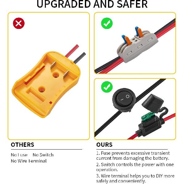 Power Wheel Adapter for Dewalt 20V Battery Series with Fuse, Switch & Wire Terminal, 3Pcs 30A Fuse, 12 AWG Wire Battery Converter Connector DIY for
