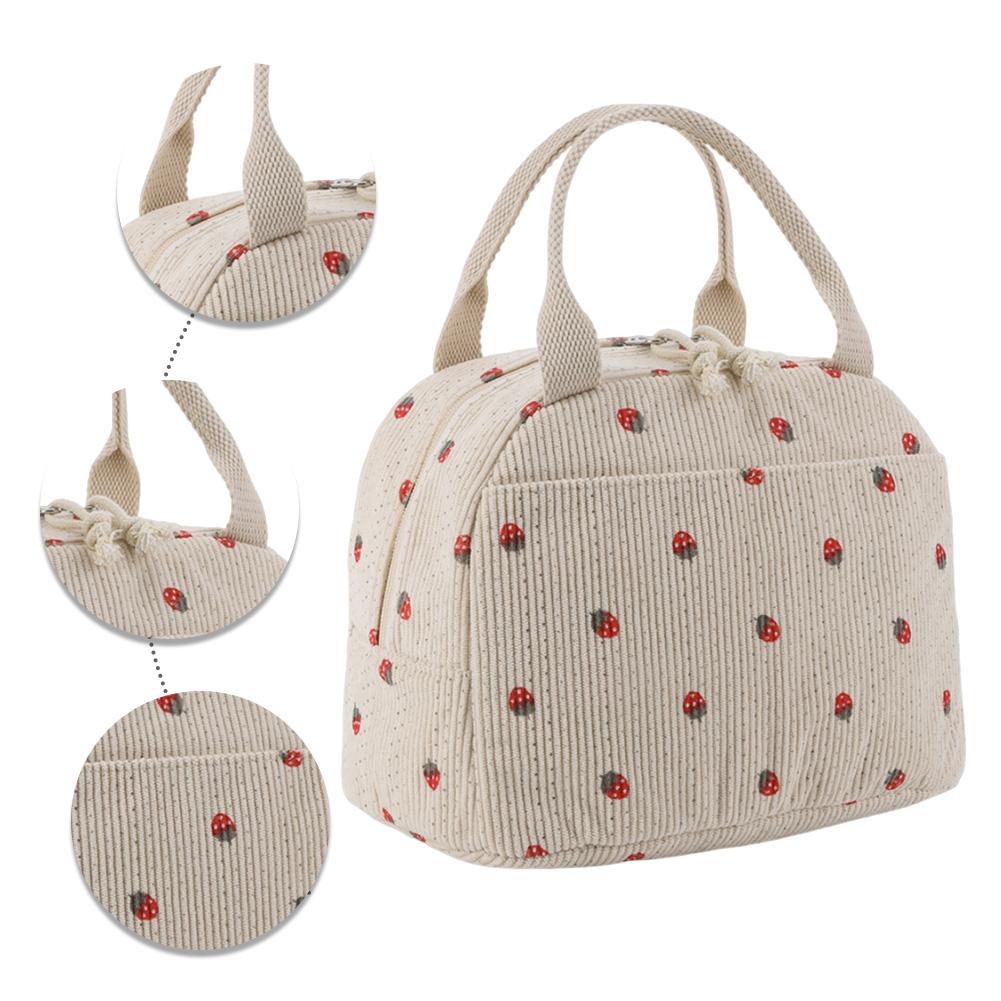 Strawberry/Daisy Corduroy Lunchbox Container Multi-Function Lunchbox Storage Bag Insulated Lunch Bag for Office School
