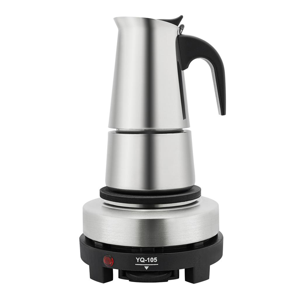 Moka Pot Stainless Steel Coffee Pot Stovetop Espresso Maker Percolator Italian Coffee Maker 200ml/7oz/4 Cup W/Electric Stove
