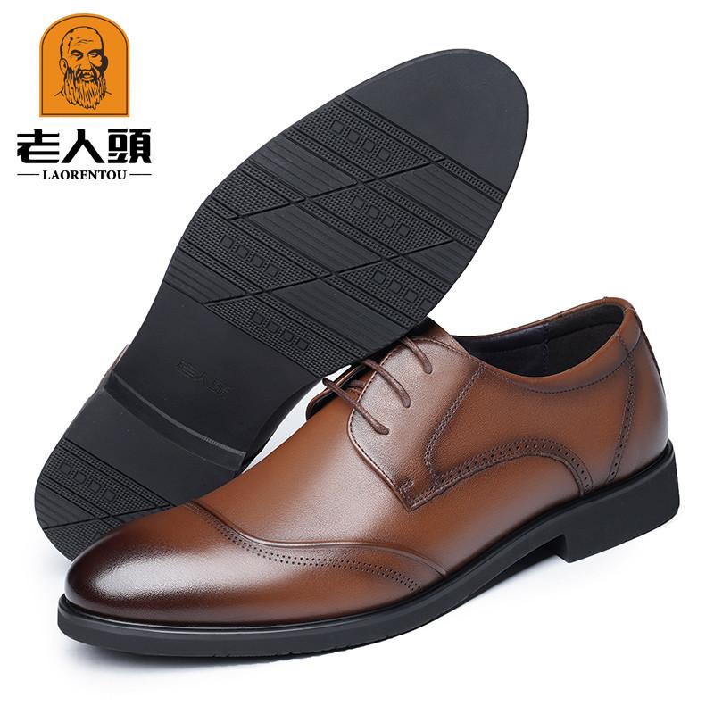 Elderly Head Leather Shoes Spring and Autumn Business Casual Leather Shoes Men's First Layer Cowhide Lace-up Wedding Dress Shoes 22557