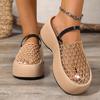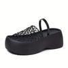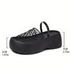 Stylish Black Mesh Fishnet Women's Casual Platform Sandals | Thick Cushioned Sole, Comfortable Slip-On Round-Toe Shoes for All-Season Wear