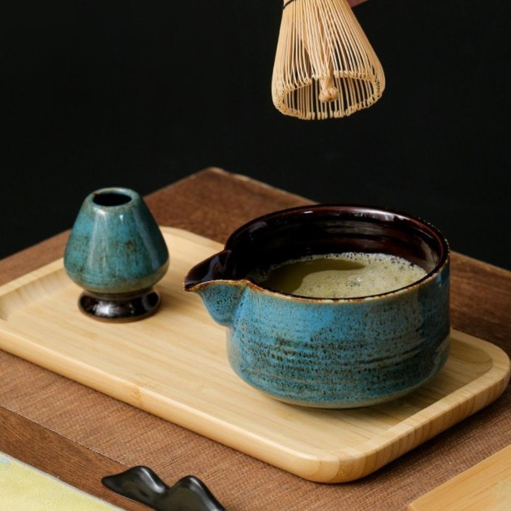 2PCS New Ceramic Matcha Brewing Cup With Pouring Spout Reusable Matcha Bowl Set Food Grade Handmade Japanese Green Tea Bowl