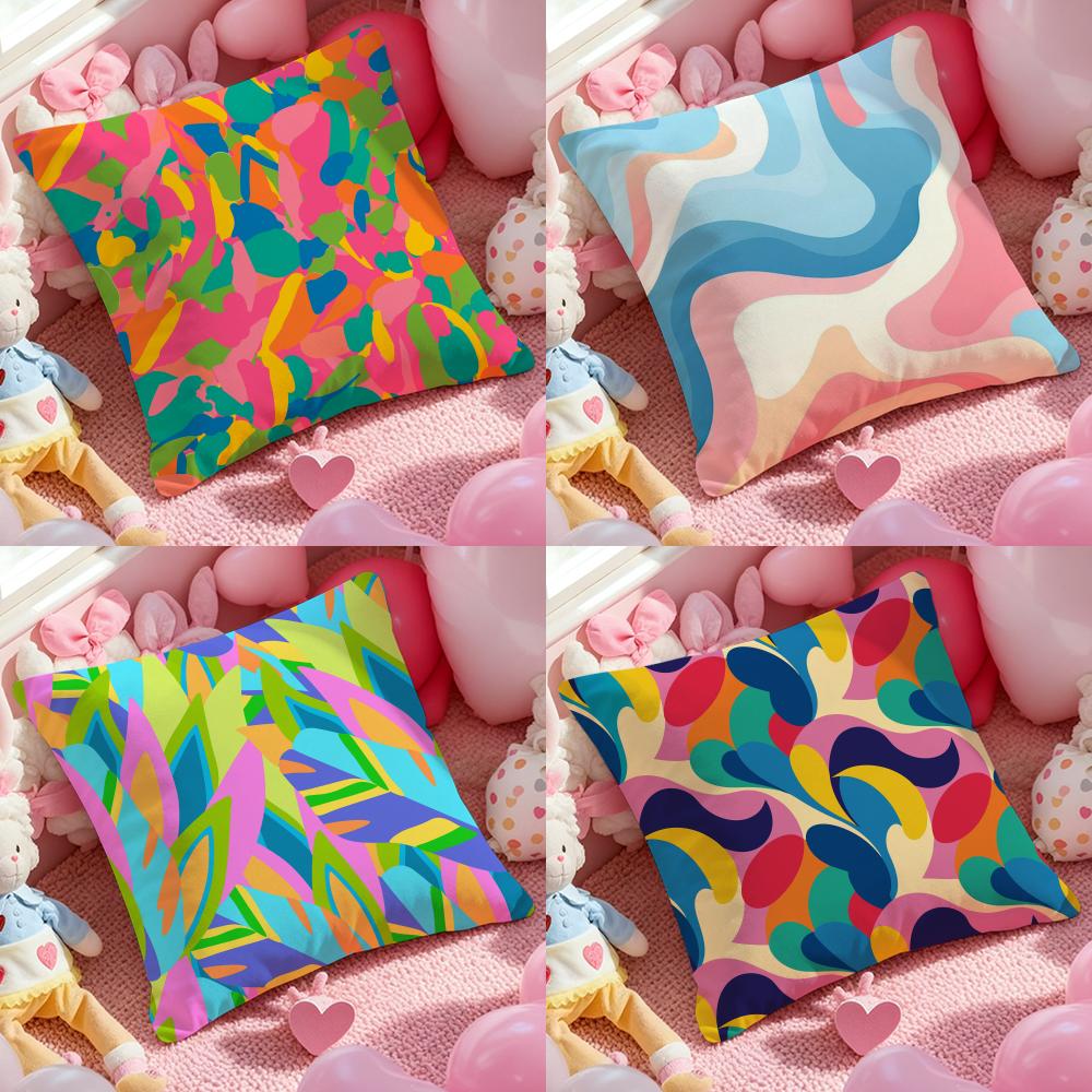 HOT Abstract Colorful Pattern Cushion Cover Anti-dustmite Pillowcase Invisible Zipper Silky Short Plush Sofa Cushion Cover