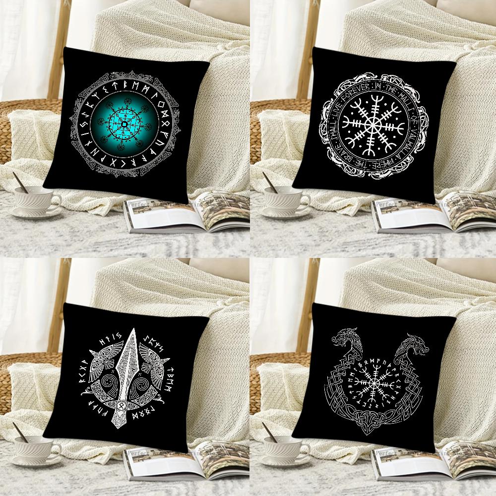 Viking Nordic Mystical Symbol Pillow Case Square Pillow Cushion Cover Bedroom Sofa Room Decoration Casual Pillow Cover