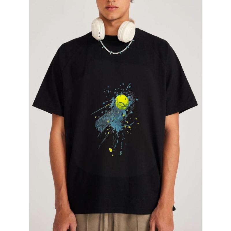 Tennis T Shirt White Tennis Ball and Racket Splash Design for Sports and Casual Wear