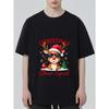 Christmas T Shirt Black Reindeer with Santa Hat and Sunglasses Christmas Cheer Squad Print Holiday Party Wear