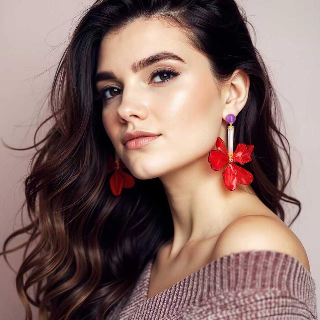 Bohemian Personality Trend Creative Design Sense Exaggerated Acrylic Flower Leaf Earrings Women