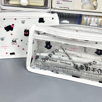 Cute Black Small Cat Translucent Pencil Case Storage Bag Large Capacity Stationery Pouch Gifts