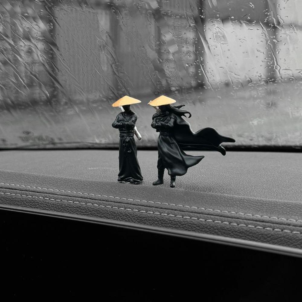 Miniatures Cool Kung Fu Swordsman Figure Black White Mini Ornaments Sand Table Layout Plant Decoration