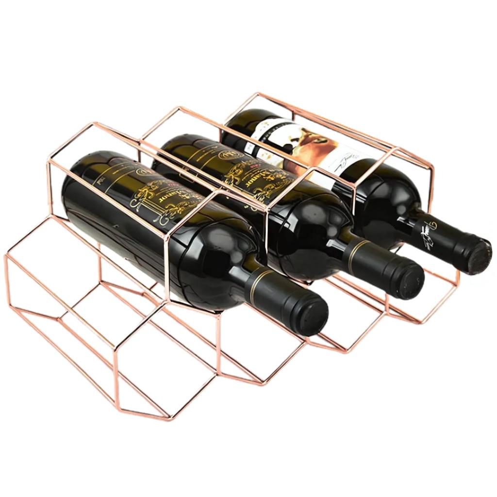 Small Rose Gold Wine Rack/Cellar with 7-Bottle Display and Holder, NYANDELMO ND-0149-R19-RGD