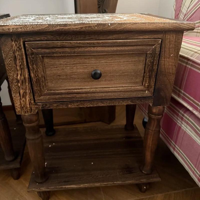 Solid Wood Nightstand Vintage French Distressed Bedside Table with Drawer for Bedroom Storage Cabinet Side Table