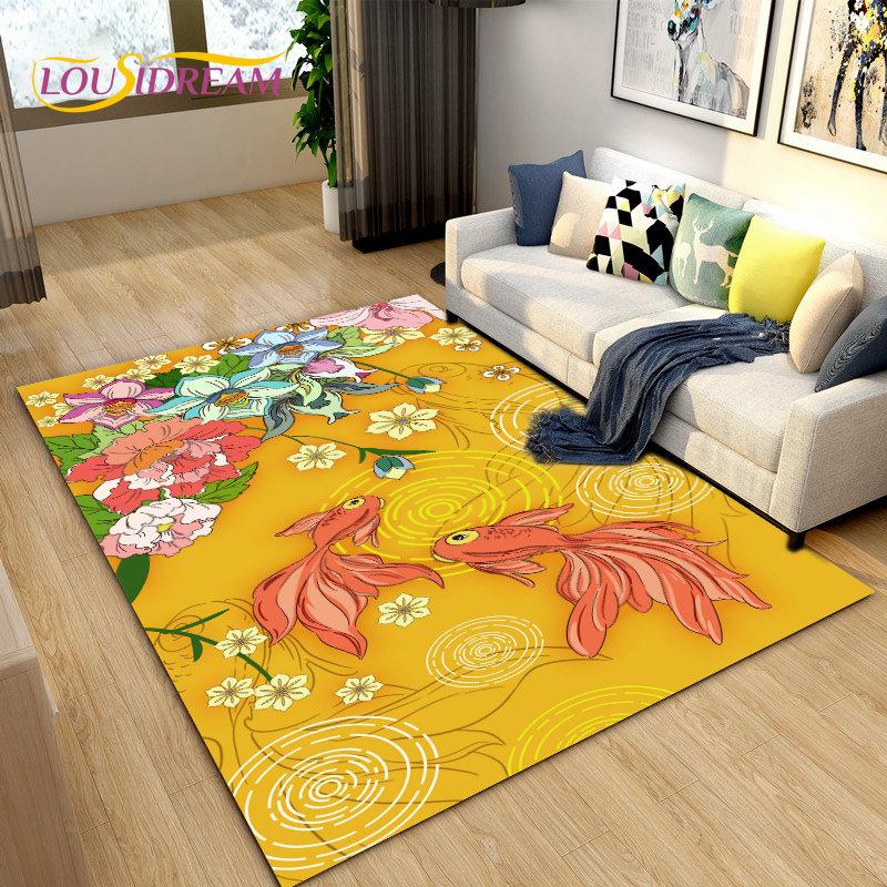 3D Classical Chinese Style Area Rug Large,Carpet Rug for Living Bedroom Sofa Doormat Decoration,Children Play Non-slip Floor Mat