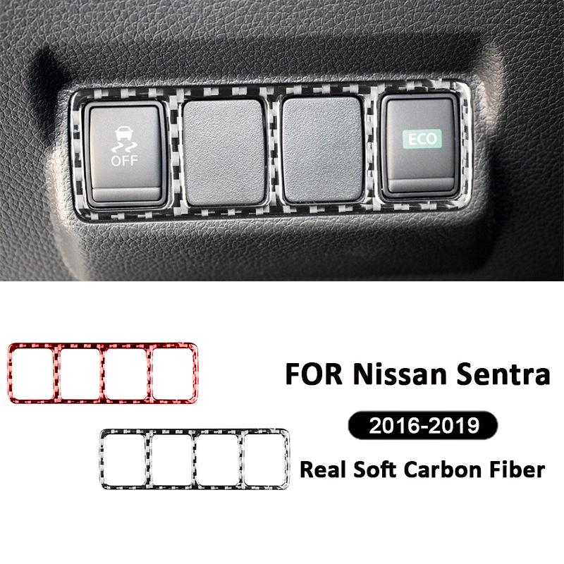 For Nissan Sentra 2016- Carbon Fiber Car Headlight Adjusting Switch Buttons Panel Trim Frame Decoration Interior Sticker