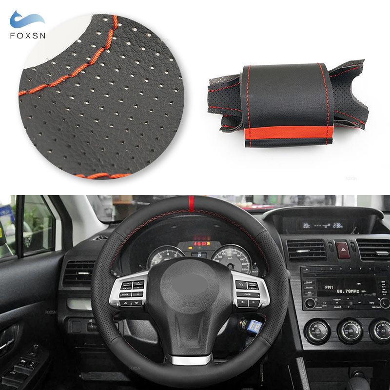 Red Line with Red Strip Hand-Braids Car-styling Steering Wheel Cover Leather Trim For Subaru Forester 2008-2015 XV 2012-2015