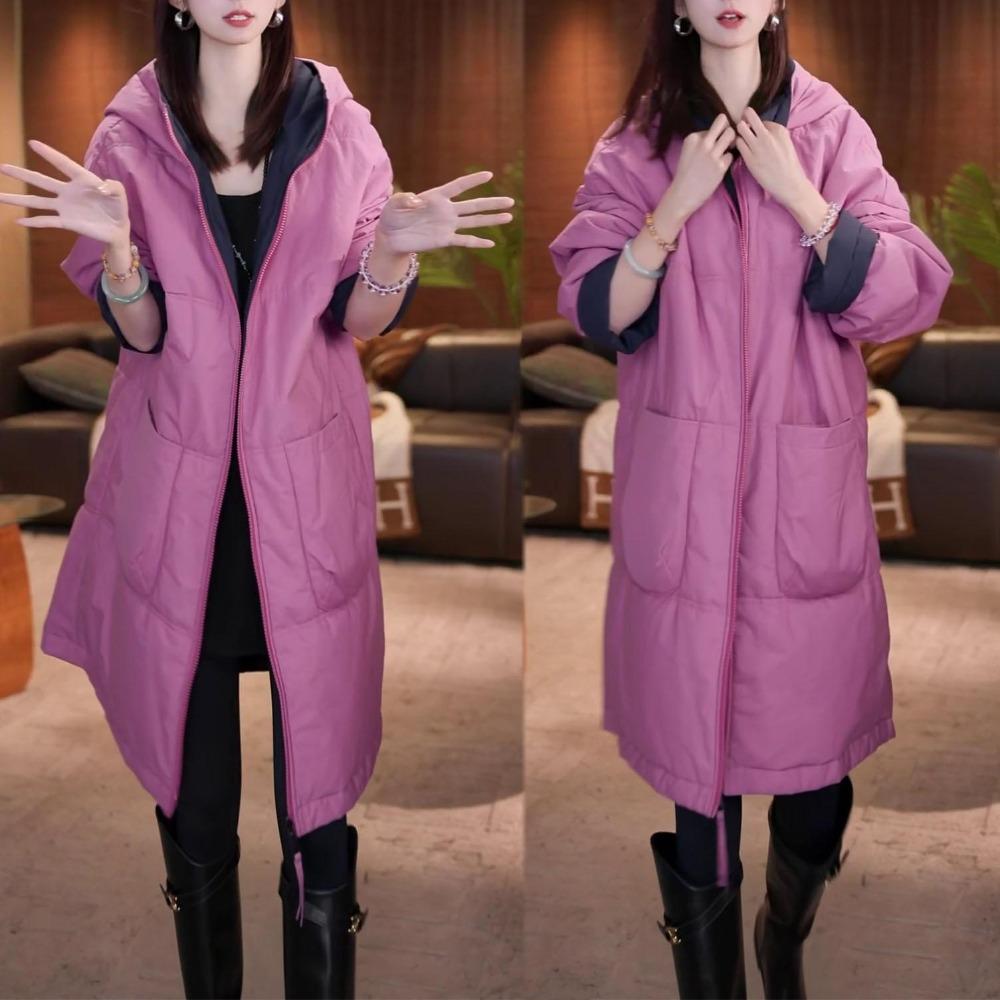 Women Fashion Loose Warm Cotton Coat Winter Double Sided Hooded Jacket Elegant Casual Outwear