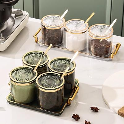 Creative Transparent Gold-plated Striped Spice Jar Spice Salt Sugar Jar with Lid Multifunctional Storage Box Storage Container