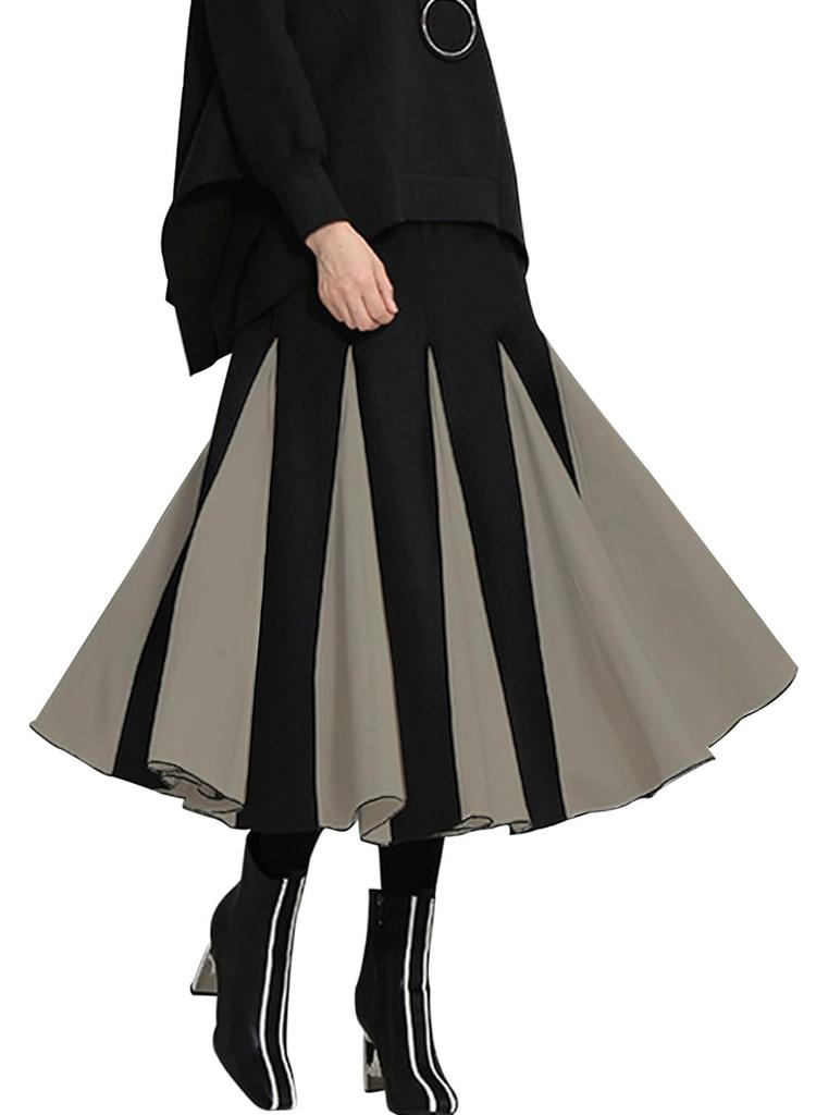 Sueeya Long Elastic Loose Perfect for and Everyday Fall and Winter Women's Skirt, Two-Tone, Waist, Simple, Fit, Figure-Flattering, Stylish, Slimming,
