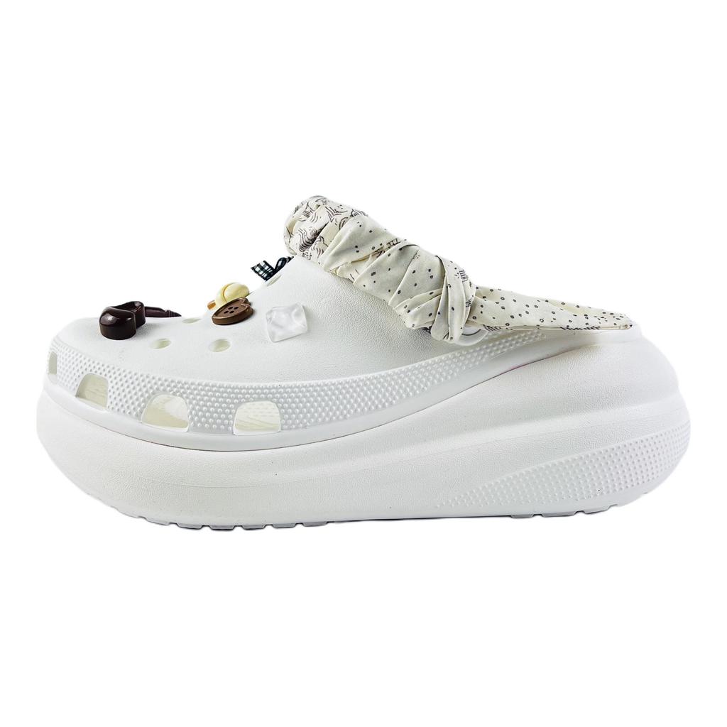 Crocs Crush Clog EVA Button Bear Fashion and Versatile Comfortable and Casual Puff Shoes Hole Shoes Unisex White
