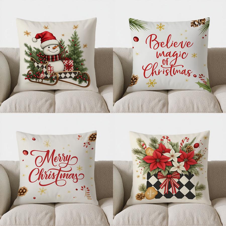 Home Decor Snowman Sleigh Christmas Decorative Pillow Cover Pattern Cushion Cover Suitable For Sofa Bedroom Car Pillow Cover