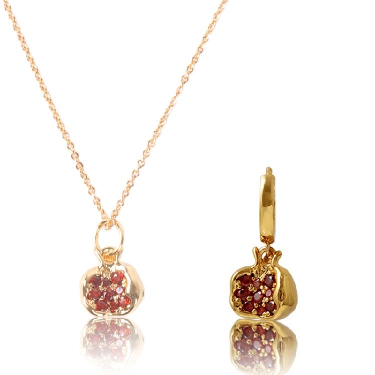 Pomegranate Pendant Earrings/Necklace Elegant Zircons Fruit Jewelry for Women