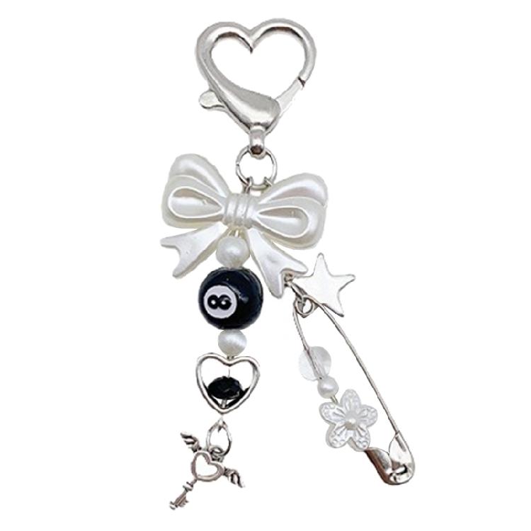 Sweet Bowknot Phone Chain Ornament Heart Beaded Cellphone Pendant Phone Lanyard