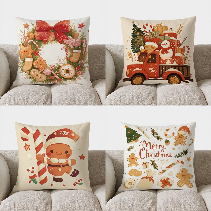Home Decor Christmas Wreath Cushion With Sweet Treats Pattern Cushion Cover Suitable For Sofa Bedroom Car Pillow Cover
