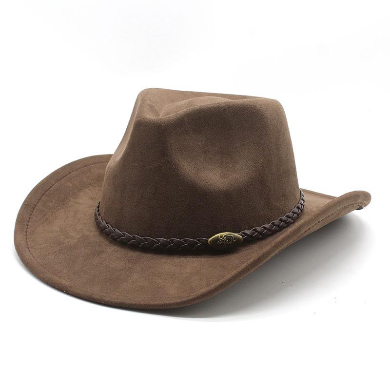 Western Cowboy Hat Suede Brown Jazz Top Hat Men And Women Ethnic Style Big Eaves Hat