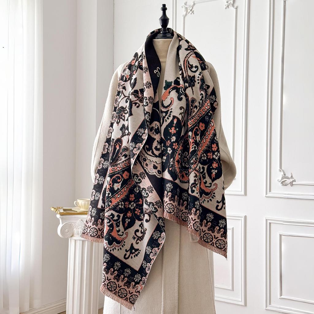 Brand Fashion Winter Cashmere Shawl for Women - Tasseled Flower Printed Pashmina Scarf, Thick Warm Wrap & Poncho
