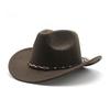 American Western Cowboy Hat Men'S Riding Hat Outdoor Travel Equestrian Hat Bent-Brimmed Wool Top Hat